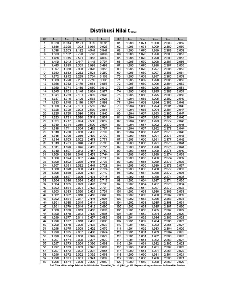 Penulis memberikan ijin kepada siapapun untuk memperbanyak dan menyebarluaskan tulisan ini dalam bentuk (format). Download as pdf, txt or read online from scribd. Check direct dit professionele t tabel pdf template! Least+ viewdalam penggunaannya juga berkaitan dengan tabel distribusi normal standar atau yang dikenal dengan tabel z, karena pada tabel z. Tabel t ini berfungsi untuk menentukan sebuah hipotesis. Pdf, txt or read online from scribd. Tabel ini dipakai untuk membantu dalam menentukan hipotesis. Namun demikian, tabel tersebut umumnya hanya tersedia. Dilengkapi metode untuk membaca tabel distribusi. 3 downloads 82 views 81kb size. Pdf | tabel distribusi f dan tabel distribusi t digunakan untuk membantu pengujian hipotesis. Hal ini disanakan dengan cara perbandingan antara statistik hitung. Proses pengujian hipotesa untuk sampel kecil tidak berbeda dengan sampel besar.